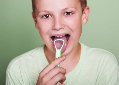 - 부드러운 모의 칫솔에 달린 혀 스크레이퍼를 사용합니다.