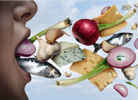 특정 음식이나 식품도 구취를 유발할 수 있습니다. 우리가 음식을 섭취할 때 위와 대장을 통해 소화된 대사산물은 혈류로 흡수되어 호흡을 통해 배설됩니다. 양파, 마늘, 파, 부추, 고기 등의 음식을 먹은 후에는 이를 닦아도 악취가 날 수 있습니다.